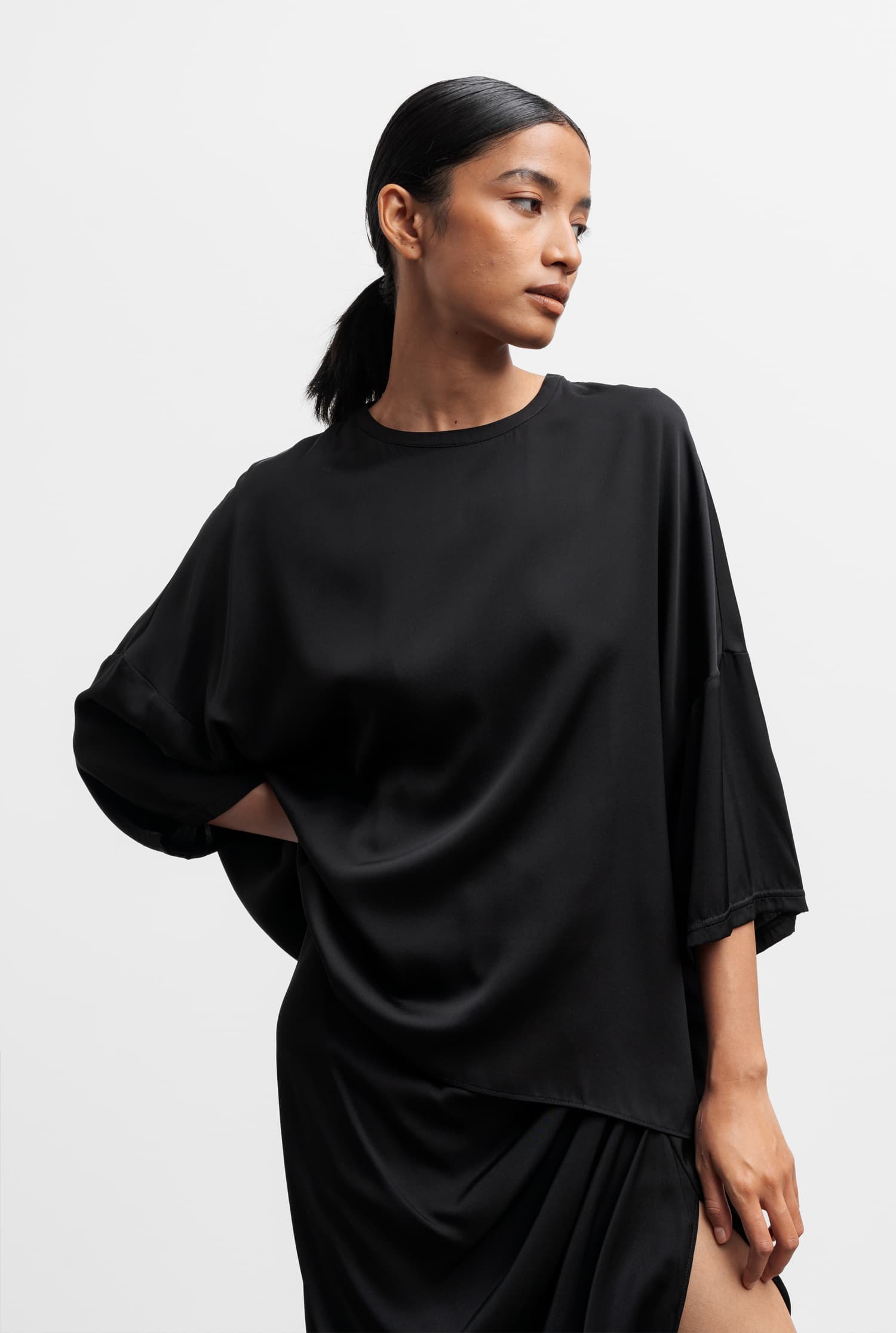 Thess från Ahlvar Gallery är en elegant och modern blus i en vacker svart nyans som tillför en sofistikerad touch till varje outfit. Tillverkad i högkvalitativt material erbjuder Thess en mjuk och följsam passform, vilket gör den perfekt för både vardagsbruk och festligare tillfällen. Den stilrena designen gör den enkel att matcha med olika plagg, och den svarta färgen ger ett stilrent uttryck.
