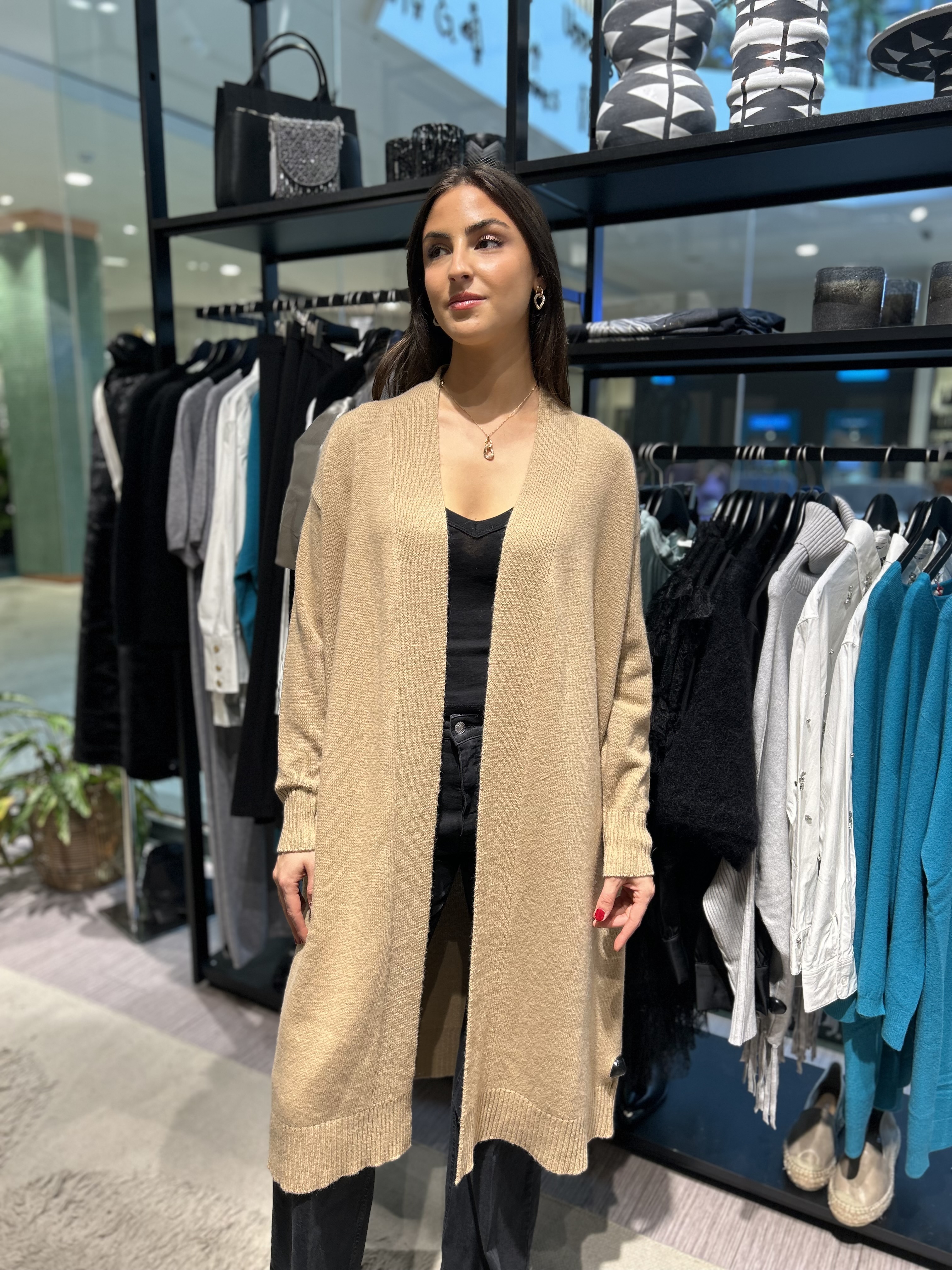 Denna långkofta i kashmirblandning är en perfekt kombination av lyx och komfort. Tillverkad av en mjuk och varm kashmirblandning, erbjuder denna kofta en elegant och tidlös stil som passar alla tillfällen. Den långa siluetten ger en sofistikerad look, medan materialet ger en underbart mjuk känsla mot huden. Denna långkofta i kashmirblandning är ett mångsidigt och sofistikerat plagg som enkelt kan stylas över dina favoritplagg. Perfekt att bära över en klänning eller med byxor för en lyxig vardagslook.