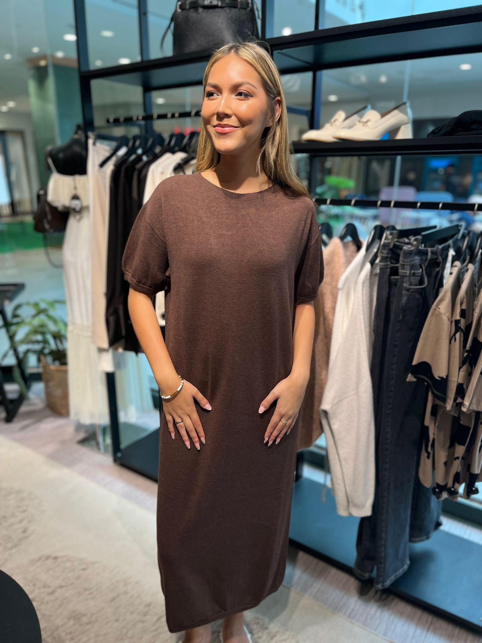 Alice är en stilren och bekväm stickad klänning med kort ärm, perfekt för både vardag och festligare tillfällen. Den mjuka stickningen ger en smickrande passform, samtidigt som den erbjuder komfort hela dagen. Den kortärmade designen gör Alice idealisk för att bäras ensam under varmare dagar eller med en kofta för en lager-på-lager-look. Med Alice får du en mångsidig klänning som enkelt kan kläs upp eller ner beroende på tillfälle, och som ger en sofistikerad touch till din garderob.