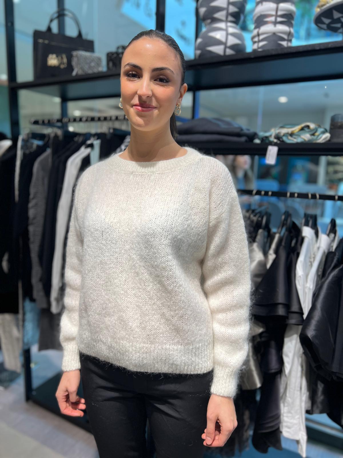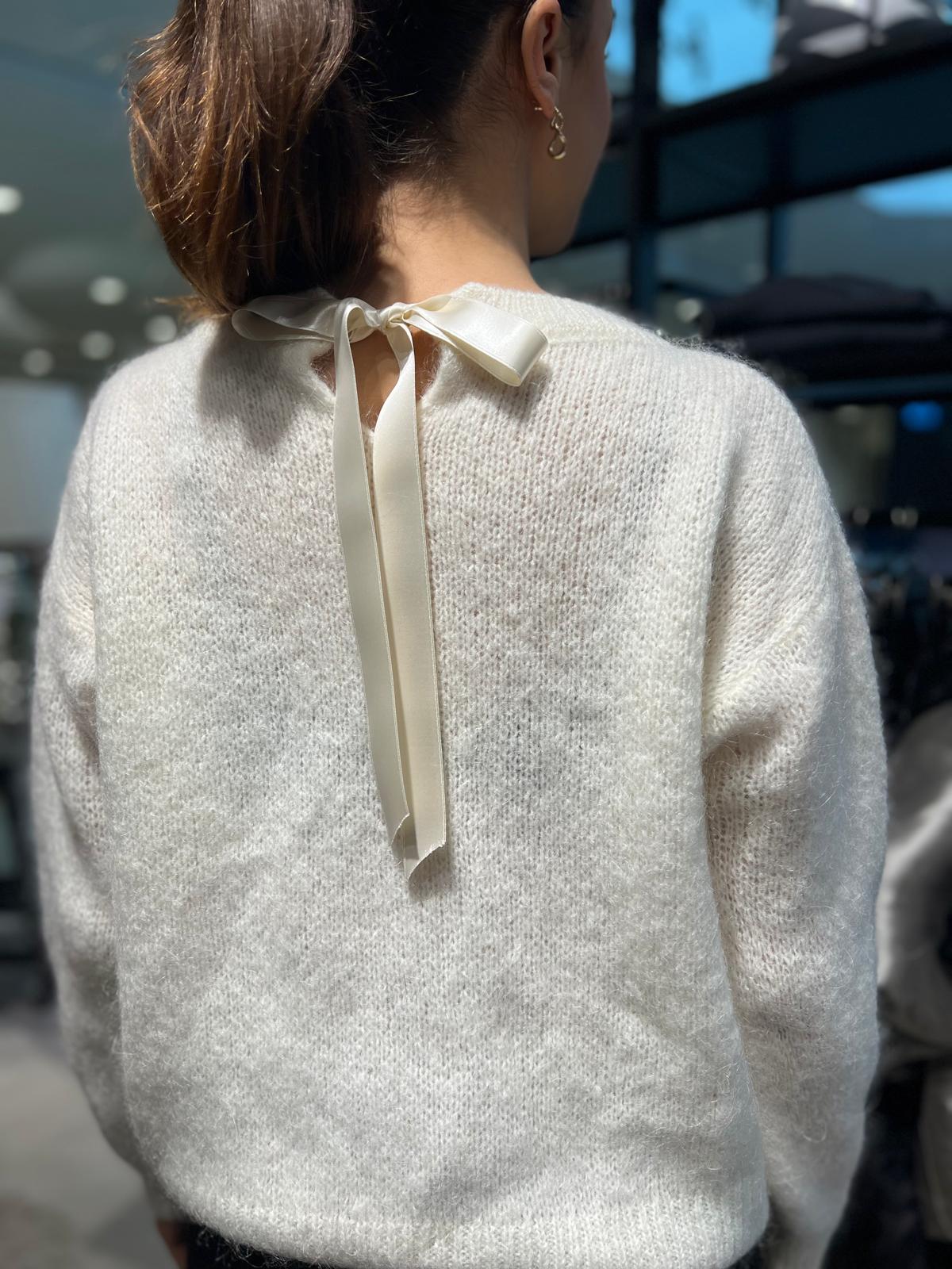 Marcella är en elegant tröja med en stilfull detalj som gör den unik – en söt rosett bak vid nacken. Tillverkad i ett mjukt och bekvämt material, är denna tröja perfekt för både vardagsbruk och mer uppklädda tillfällen. Den feminina designen med en subtil rosett ger en extra touch av sofistikation till din outfit.