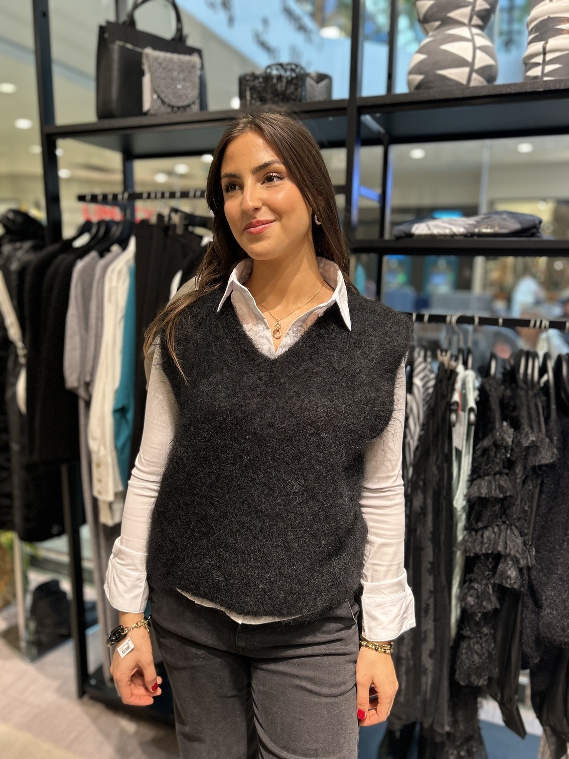 Den stickade västen är ett mångsidigt och trendigt plagg som ger extra värme och stil till din outfit. Med sin klassiska stickade design och bekväma passform passar västen perfekt över en skjorta eller under en jacka för en lager-på-lager-look. Perfekt för både vardag och jobb, den stickade västen ger en avslappnad men ändå elegant känsla. Denna stickade väst är ett perfekt komplement till din garderob och kan enkelt stylas med en skjorta, blus eller över en klänning för en chic och modern look.
