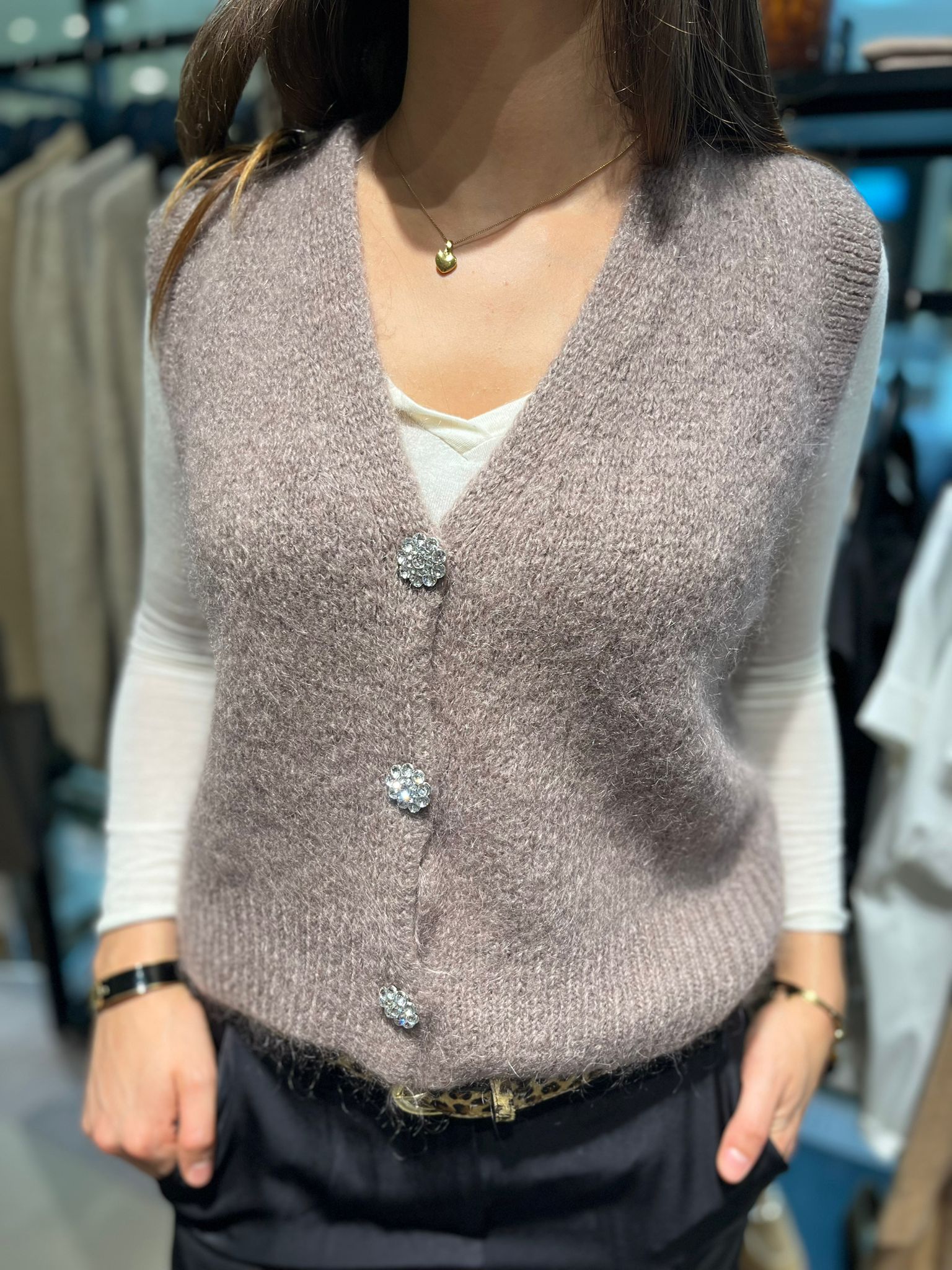 Gina är den ultimata västen för alla tillfällen, perfekt att bära över en skjorta eller under en kavaj. Den tidlösa designen gör att den passar lika bra till vardags som på jobbet eller vid festliga tillfällen. Tillverkad i en lyxig blandning av mohair, ull, polyamid och akryl, ger Gina både värme och komfort utan att kompromissa med stilen. Gina är ett mångsidigt plagg som adderar ett sofistikerat lager till din outfit, samtidigt som den är skön att bära oavsett tillfälle.